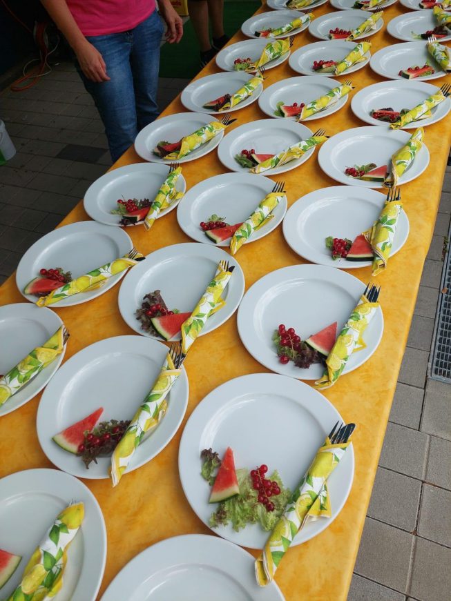 Für das leibliche Wohl gab es Weißwurst, Saitenwurst (auch vegetarisch), gegrillte Köstlichkeiten mit Kartoffelsalat – und zum Abschluss Eis, Eiskaffee und Eisschokolade.